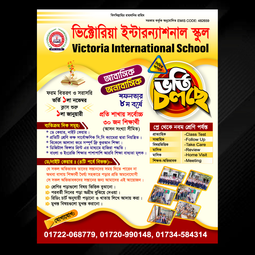 আপনার সন্তানকে কেন প্রাইমারী স্কুলে ভর্তি করবেন সেই সকল কারণসমূহ দিয়ে ব্যানারটি তৈরি করা