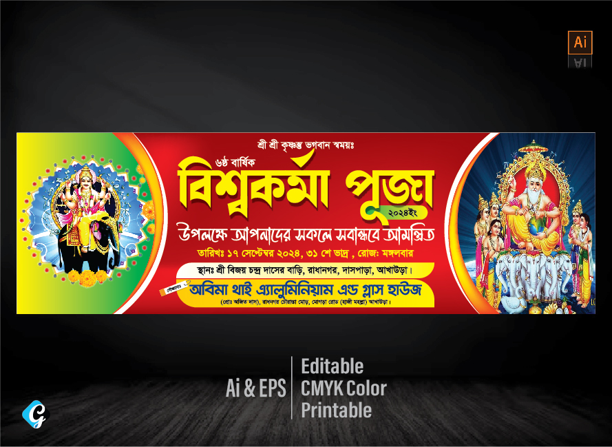 বিশ্বকর্মা পূজা ব্যানার | Puja Ba..