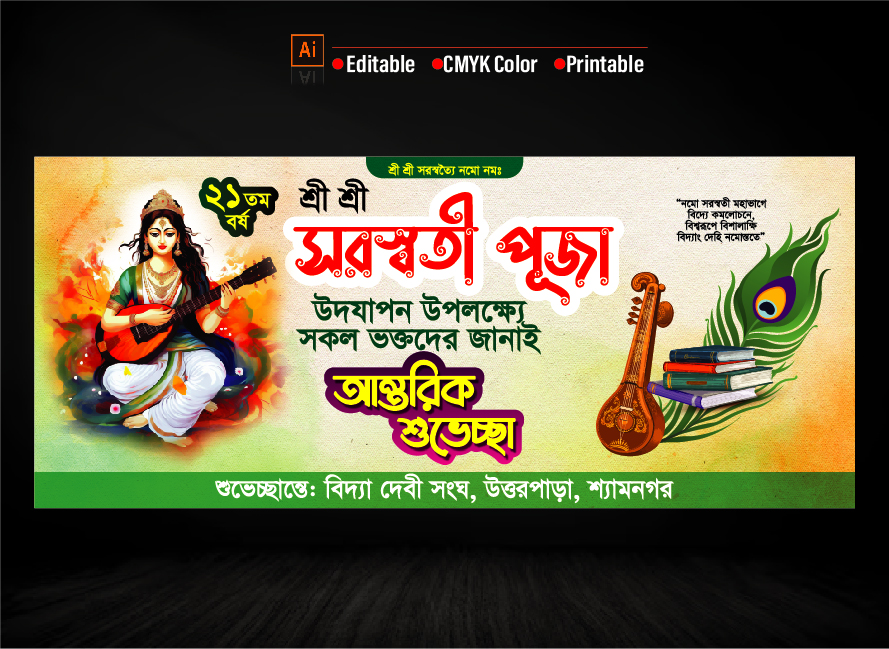 সরস্বতী পূজা ব্যানার | Puja Banner Desi..