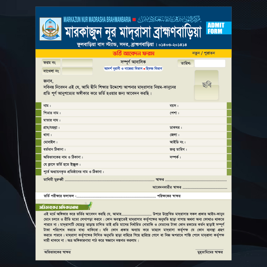 মাদ্রাসার ভর্তি ফরম | Madrasa Vorti Form..