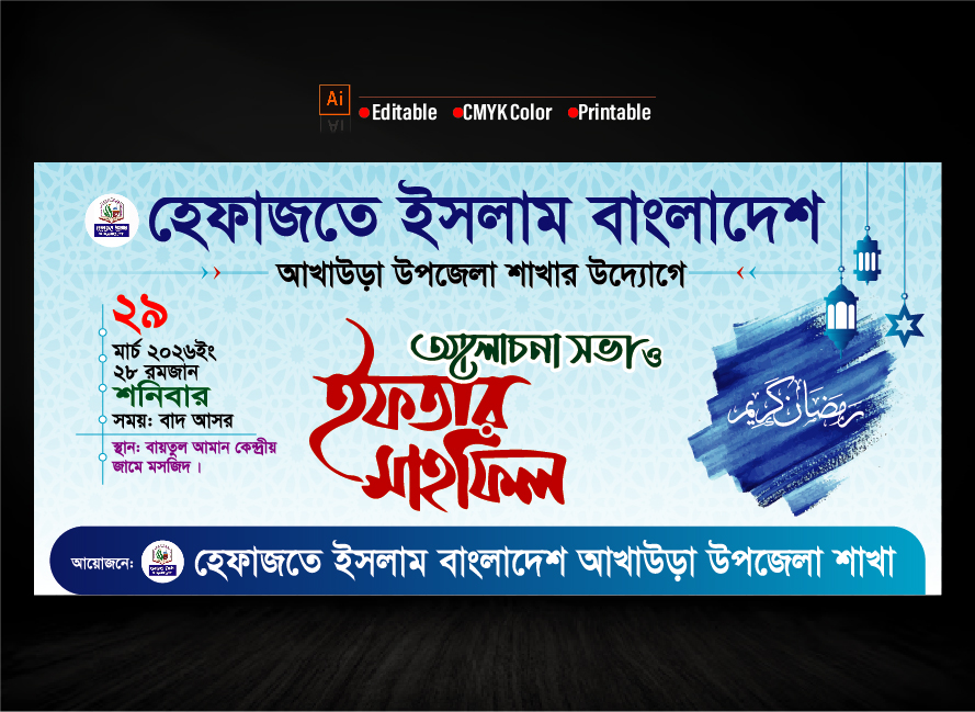 ইফতার মাহফিলের জন্য ধারুণ একটি ব্যানার ডিজাইন